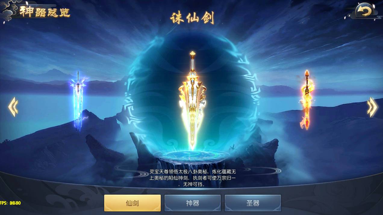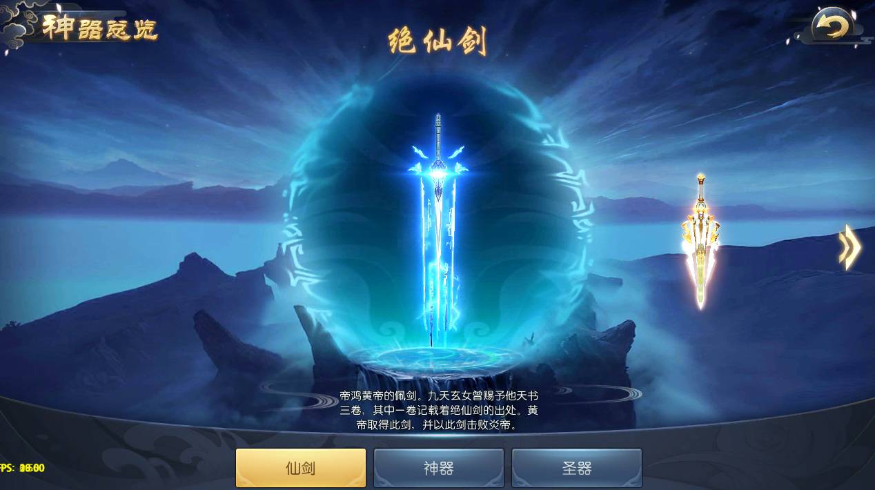 神器一共有5种,分别是伏羲琴、昊天塔、昆仑镜、九黎壶、女娲石,每一种都有对应的特殊技能,每种神器都需要完成相应的主线任务去激活,激活以后可以通过闯关挑战对技能进行升级