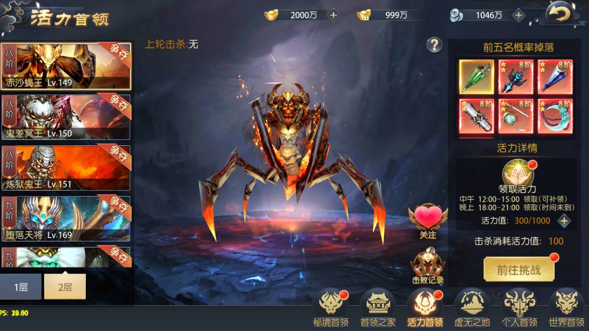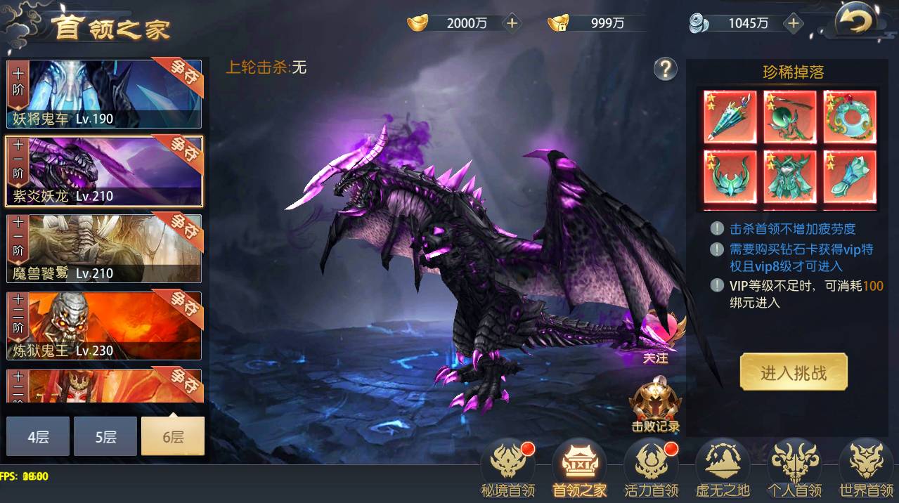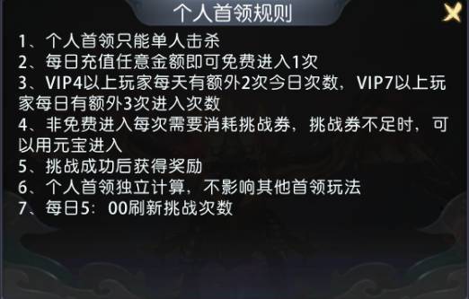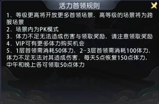 1、不同等级的玩家可以挑战对应等级的首领,无法去挑战低等级首领