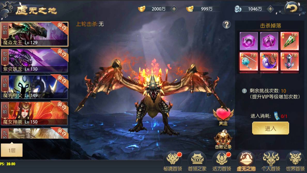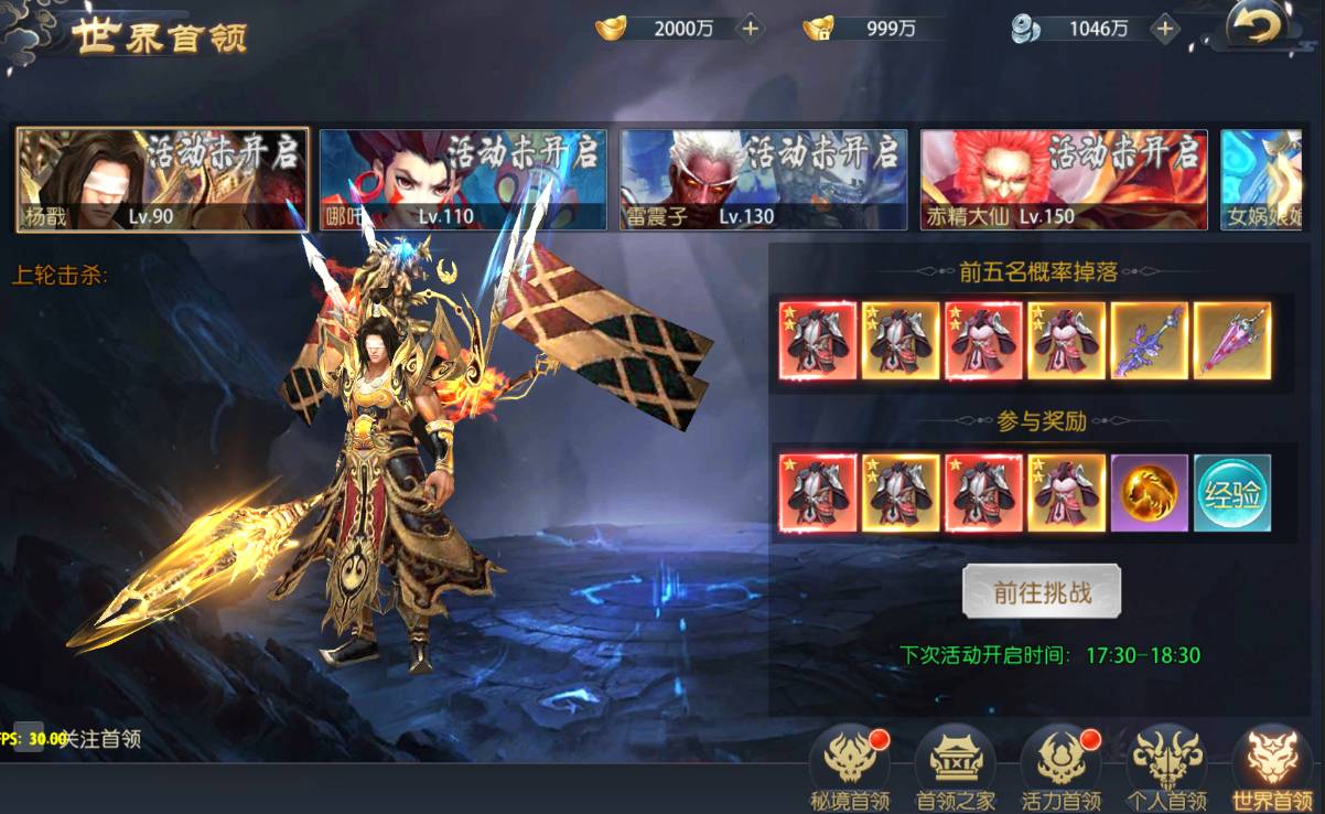 秘境首领、首领之家、活力首领、虚无之地、个人首领、世界首领